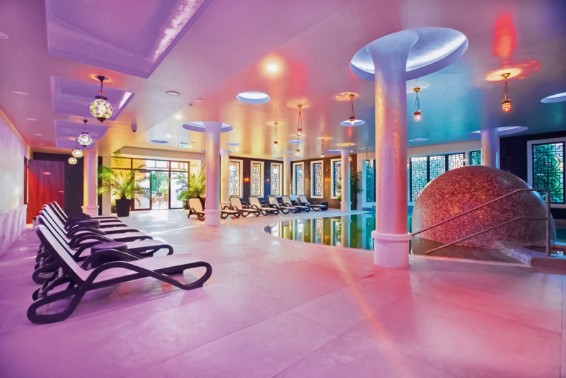 Wellness In diesem luxuriösen Hotel können Sie Fitness- und Yogaunterricht nehmen. Gönnen Sie sich eine Hand-, Fuß-, Nacken-, Rücken- oder Ganzkörpermassage. Freuen Sie sich auf diverse Badebecken und Schönheitsangebote sowie Ruhezonen. Ebenso stehen Ihnen ein Türkisches Bad, ein Whirlpool, eine Sauna und ein Solarium zur Auswahl. Teilweise fallen Gebühren an.