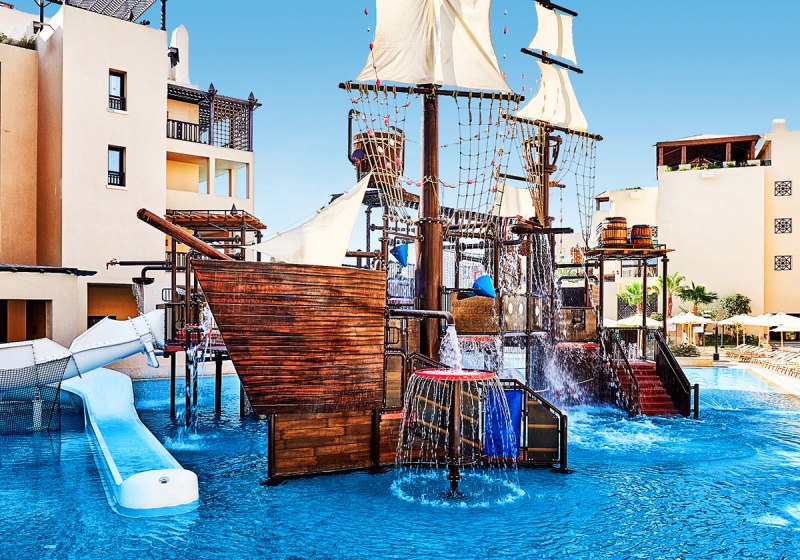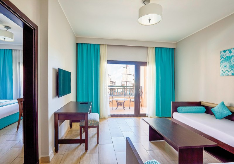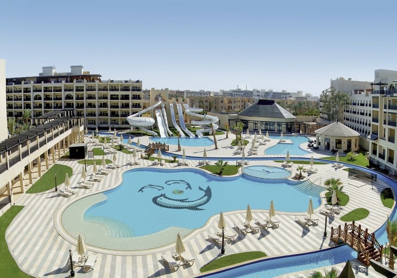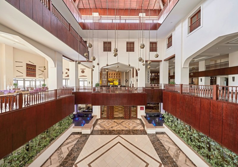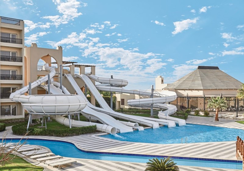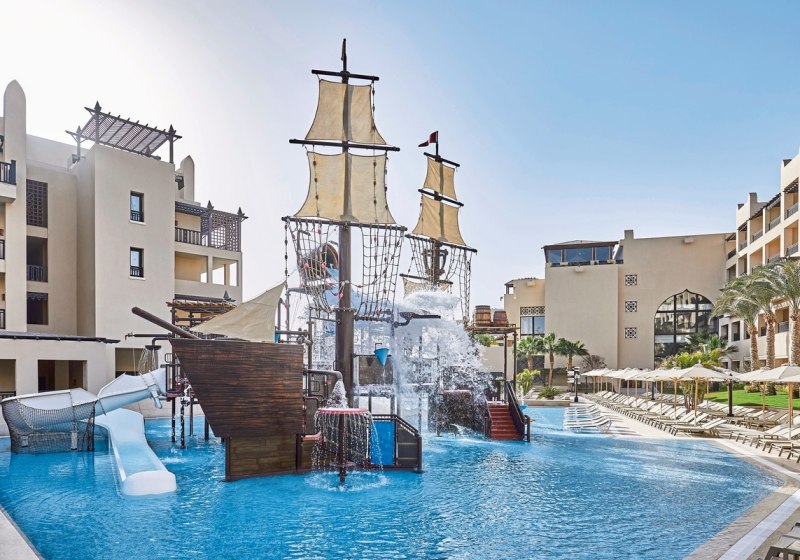 Im Steigenberger Aqua Magic trefft Ihr auf ein lebendiges Resort mit klarer Struktur: große Wasserwelten, kurze Wege und viele Rückzugsorte. Die Anlage wurde 2014 eröffnet und wirkt entsprechend modern. Ihr bewegt Euch zwischen Lobby, Lounge und Shopzeile, während über Euch die Magic Sky Bar auf der Dachterrasse lockt. Für Familien stehen Miniclub, Teenieclub und ein Piratenschiff mit Wasserspielen bereit, während Ihr am Adults-only Dachpool angenehm ruhig verweilt.