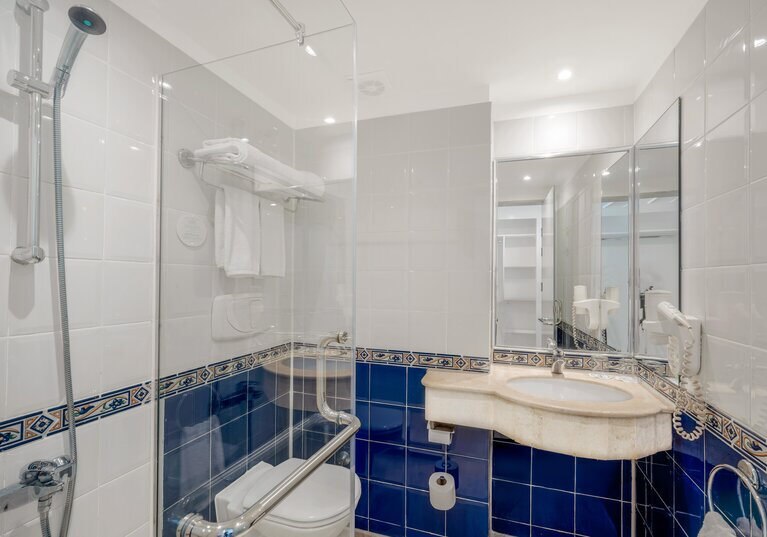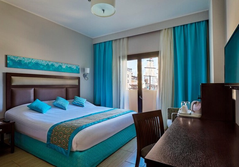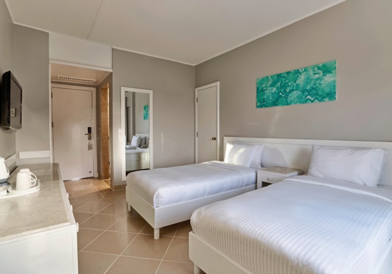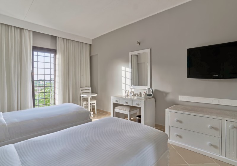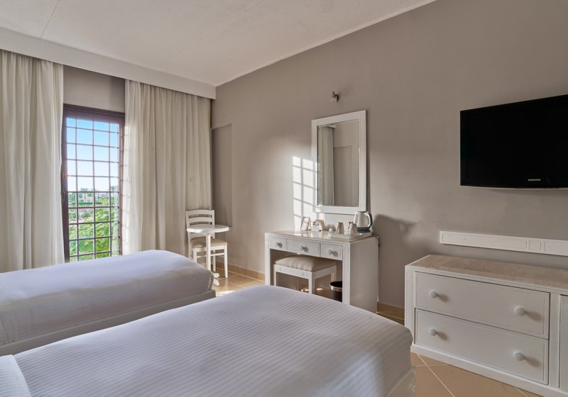 Die Zimmerausstattung ist auf Komfort und Zweckmäßigkeit ausgerichtet: Klimaanlage, Dusche/WC, Föhn, Safe, Sat-LED-TV, kostenfreies WLAN sowie Kaffee- und Teezubereiter. Eine Minibar ergänzt den Standard. Viele Einheiten verfügen über Balkon, Standardzimmer sind ohne Balkon ausgewiesen. Verdunkelungsvorhänge, Kissen- und Handtuchauswahl sowie Marmorboden unterstützen ein aufgeräumtes Raumgefühl.