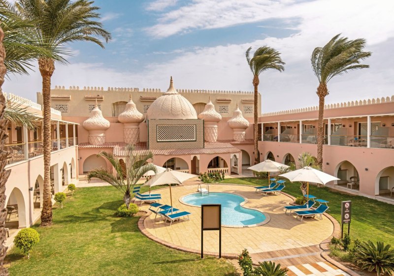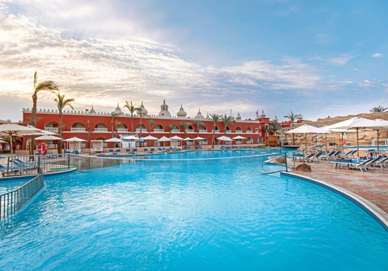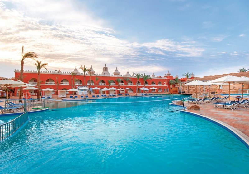 Das Pickalbatros Alf Leila Wa Leila Resort verbindet die Anmutung eines orientalischen Dorfes mit klarer Organisation. Sieben Pools, bequemer Shuttle zum Dana Beach und fünf Restaurants geben Eurem Tag Struktur. Familien profitieren von Kinderpools mit Rutschen und Miniclub, Paare und Freundeskreise von abendlichen Shows und Live-Musik.