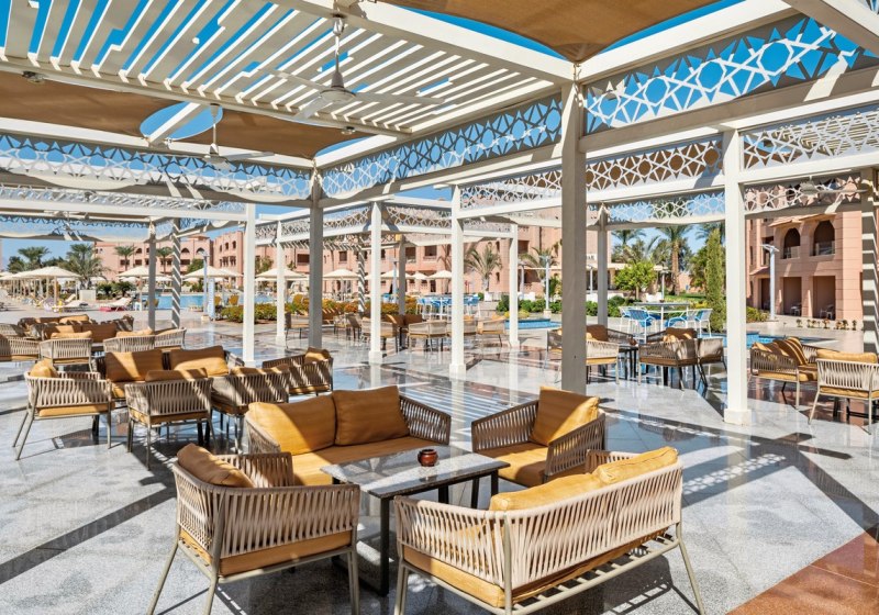 Die Anlage ist auf Bewegung und Übersicht ausgelegt: fünf Swimmingpools, darunter ein Adults-Only-Pool und ein Dachpool, strukturieren die Bereiche klar. Liegen, Sonnenschirme und Badetücher stehen am Pool bereit, am Strand warten zusätzlich Liegen und Schirme. WLAN nutzt Ihr in der gesamten Anlage und in den Zimmern. Highlight: Adults-Only-Dachpool mit angeschlossener Red Sky Bar.