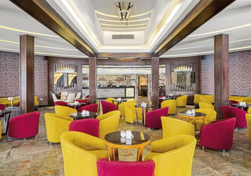 Im Hauptrestaurant wählt Ihr am Buffet, dazu kommt ein À-la-carte-Restaurant und mehrere Bars. Die Red Sky Bar krönt das Angebot am Dachpool für Adults Only. Mit All-Inclusive seid Ihr über den Tag versorgt: Frühstück, Mittag- und Abendessen, Snacks sowie alkoholische und alkoholfreie Getränke. Highlight: Kombination aus Buffet, À-la-carte und Rooftop-Bar.