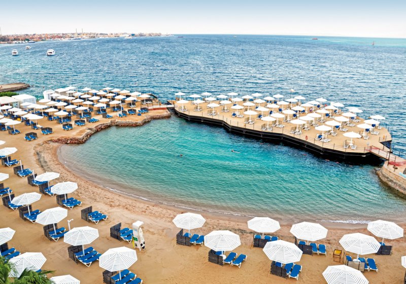 Kulinarisch wählt Ihr zwischen Buffet, vier À-la-carte-Küchen und sechs Bars, inklusive Strand-Snackbar mit Terrasse. Der Spa-Bereich, Sportangebote an Land und im Wasser sowie die Nähe zum Zentrum von Hurghada runden Euer Programm stimmig ab.