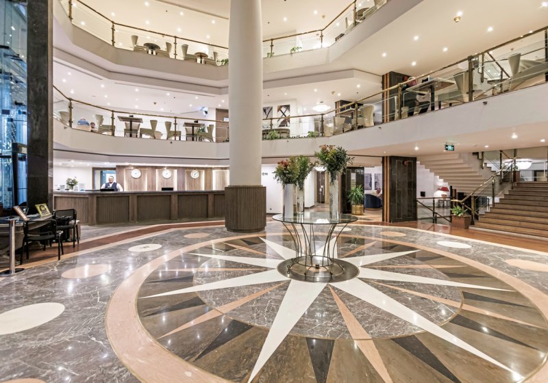 - Rundum-Service: 24-h-Rezeption, Shops, Friseur, Beautysalon und Geldautomat.