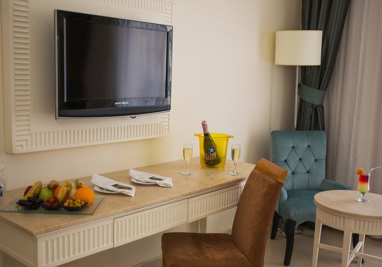 Die 2019 renovierte Anlage umfasst 318 Zimmer in niedrigen Gebäuden. Ein kostenloser Strandshuttle verbindet Euch mit dem privaten Sandstrand, wo Liegen und Schirme bereitstehen. Kulinarisch wählt Ihr zwischen drei Restaurants und drei Bars. Abends sorgen Shows und Live-Musik für Programm, während Miniclub und Kinderanimation tagsüber Struktur in den Familienalltag bringen.