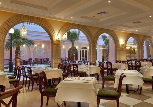 Die Infrastruktur ist umfangreich. 24-Stunden-Rezeption, Lobby mit Bar, Aufzüge und kostenloses WLAN sorgen für reibungslose Abläufe. Vier Außenpools mit Kinderbecken, Sonnenterrassen, Gartenbereiche und eine Dachterrasse schaffen klare Aufenthaltszonen. Minimarkt, Souvenir-Shop und Geldwechsel bieten praktische Services vor Ort.