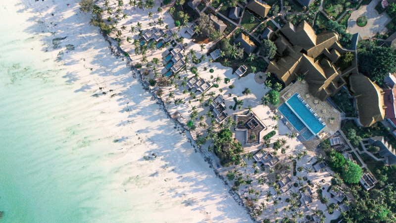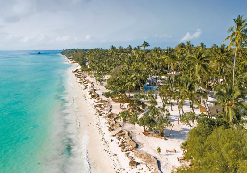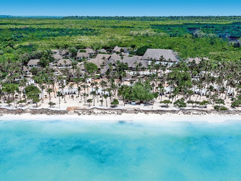 Die Lage an der Ostküste Sansibars wirkt unmittelbar und klar: Ihr wohnt direkt am Sandstrand, das Rauschen der Wellen begleitet den Tag. Der Transfer zum internationalen Flughafen dauert etwa 45 Minuten, damit bleibt die Anreise berechenbar und der Urlaubsrhythmus schnell gefunden. Innerhalb des Resorts öffnet sich eine weitläufige, rund 4 Hektar große Garten- und Strandlandschaft, die Wege sind dennoch angenehm kurz. Der Privatstrand sorgt für eine ruhige Strandzone, Liegen und Schattenplätze sind strukturiert angeordnet. Dank WLAN in den öffentlichen Bereichen und am Strand bleibt Ihr verbunden – praktisch für die Tagesplanung. Die Ostküste ist bekannt für weiches Licht und weite Gezeitenflächen; hier richtet Ihr Euren Tagesablauf an Strand, Pool und den Restaurants aus. Abends verlagert sich das Geschehen auf Terrassen, Bars und in die Unterhaltungsbereiche, das Meer bleibt stets Kulisse und Bezugspunkt.