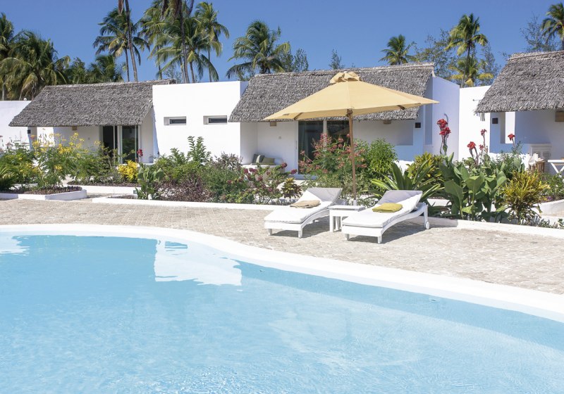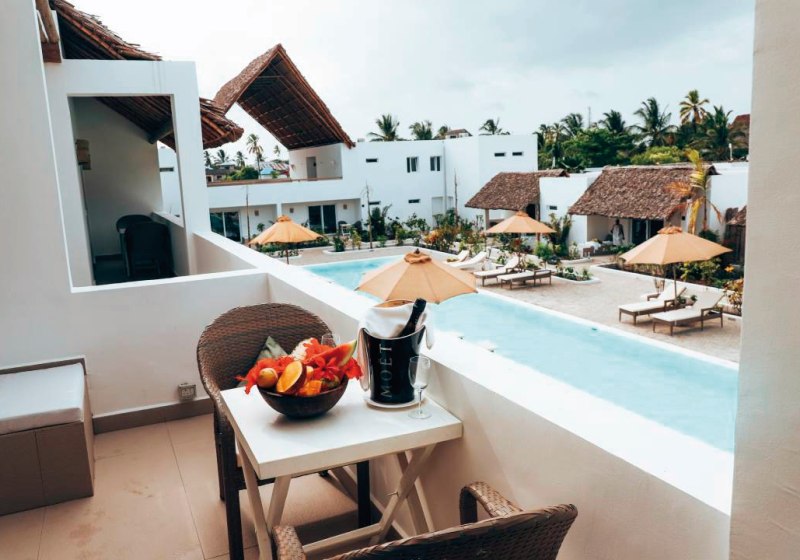 Im Dhown Inn Zanzibar wohnt Ihr in einem kleinen Boutique-Hotel der Kategorie 4, umgeben von einer gepflegten Gartenanlage mit vier Süßwasserpools und ruhigen Sonnenterrassen. Die Atmosphäre ist entspannt, die Wege sind kurz, das Ambiente wirkt persönlich. WLAN begleitet Euch in der gesamten Anlage, sodass Ihr auch im Urlaub verbunden bleibt.
