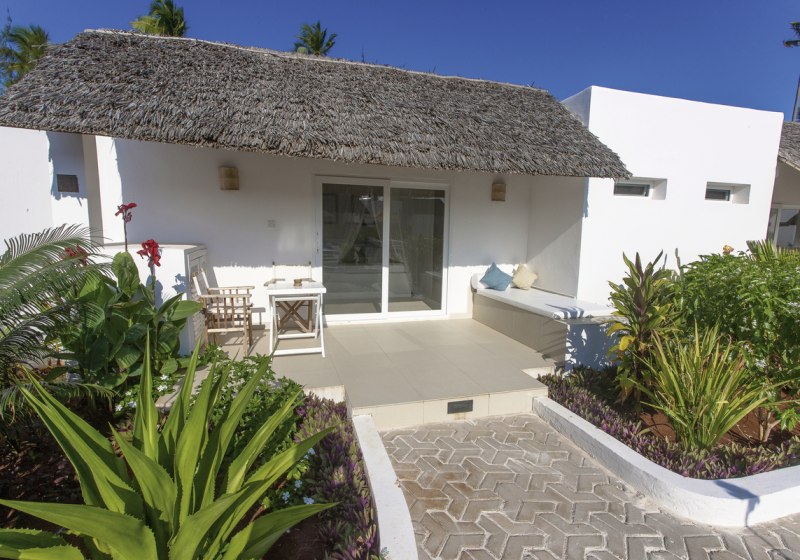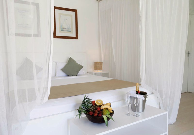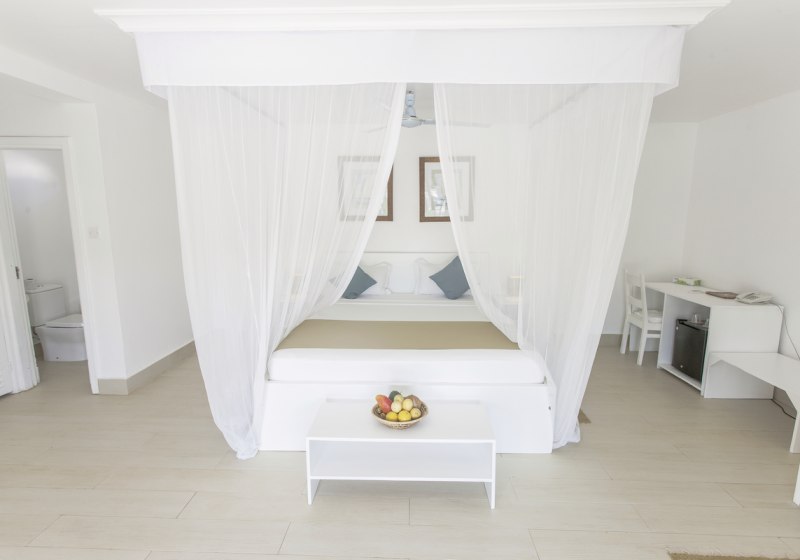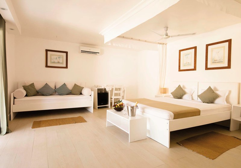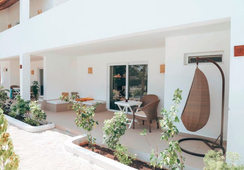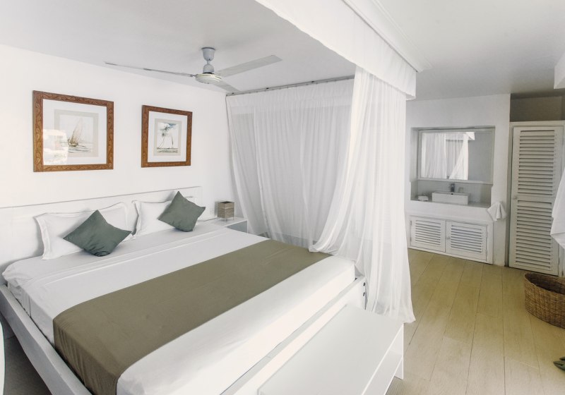 Die Zimmer messen etwa 31 bis 45 Quadratmeter und setzen auf klare Ausstattung: Klimaanlage, Ventilator, Minibar, Safe und WLAN sind an Bord. Moskitonetze sorgen für ruhige Nächte. Balkon oder Terrasse öffnet den Raum ins Freie, Dusche oder Badewanne und WC sind jeweils separat integriert.