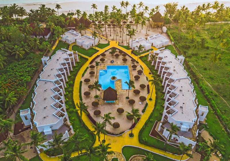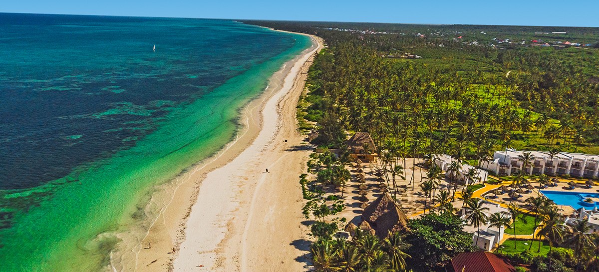 Im SBH Kilindini Resort wohnt Ihr direkt an der Strandpromenade von Pwani Mchangani. Die weitläufige Anlage auf rund 58.000 Quadratmetern wirkt entspannt, mit klar strukturierten Wegen zwischen Garten, Pool und Strand. Ihr bewegt Euch zwischen Lounge-Feeling am Wasser und lebendigen Community-Bereichen mit Bar, Restaurant und Bühne für abendliche Livemusik.