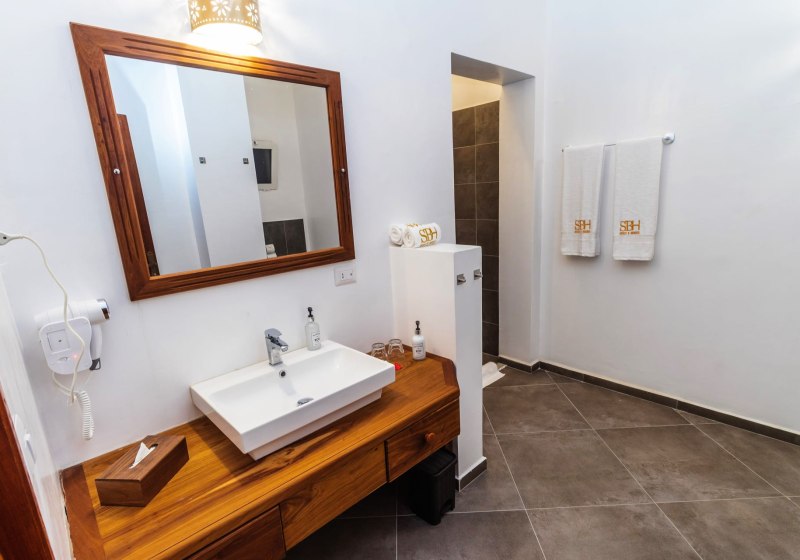 Ihr wählt zwischen Doppelzimmern Deluxe mit Gartenblick und Superior-Zimmern mit seitlichem oder direktem Meerblick. Kingsize- oder Queensize-Betten, Moskitonetz und Klimaanlage sorgen für erholsame Nächte. WLAN, TV, Safe und Telefon sind ebenso gesetzt wie Minibar, Kühlschrank und Kaffee-/Teezubereiter. Highlight: Balkon oder Terrasse öffnet den Raum ins Grüne oder aufs Meer.