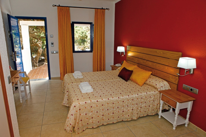In Strandnähe empfängt Sie das gepflegte Ca Mari mit 34 Zimmern in weißer Inselarchitektur. 100 Meter trennen die Unterkunft vom feinsandigen Strand. Nur fünf Minuten sind es zu den nächsten Einkaufsmöglichkeiten. San Ferran ist drei Kilometer entfernt. Im Umkreis erwarten Sie attraktive Ausflugsziele. Der Hafen von Es Calo, die Tropfsteinhöhle Xeroni sowie die Kirche Sant Francesc Xavier sollten Sie bei Ihrem Formentera Aufenthalt nicht verpassen. Der Flughafen von Formentera ist eine Autostunde entfernt.Zimmer und Unterbringung