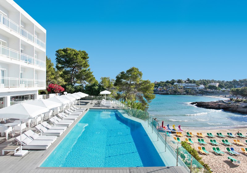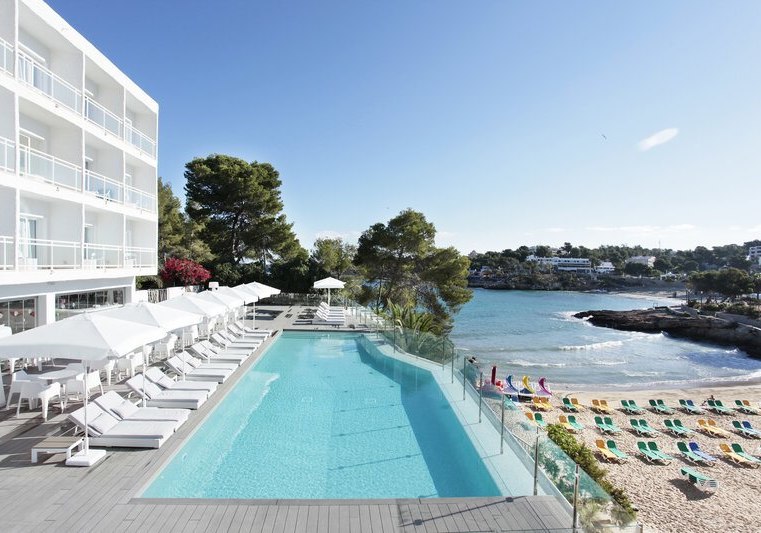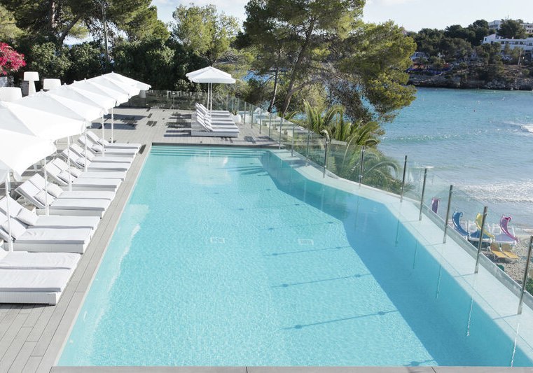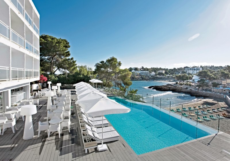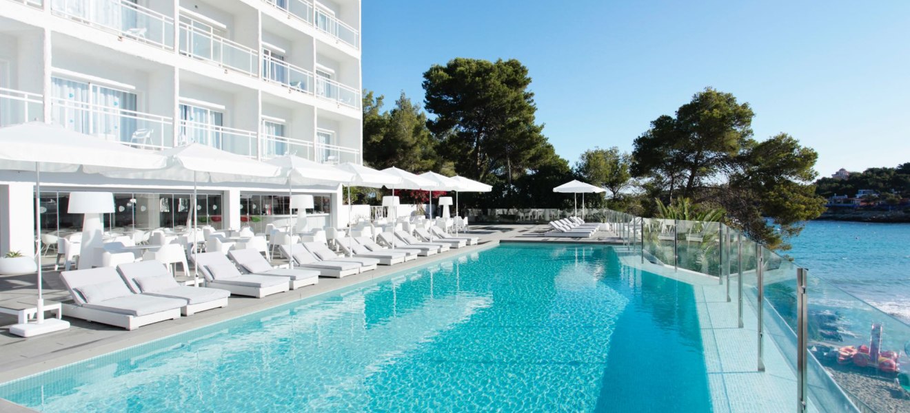 Im Grupotel Ibiza Beach Resort wohnt Ihr in einem Adults-Only-Refugium ab 18 Jahren, direkt am Meer in Portinatx im Norden Ibizas. Die Anlage verteilt sich auf vier Gebäude und öffnet sich zur Badebucht, die Ihr über Treppen erreicht. Das Ambiente ist klar strukturiert, mit sonnigen Flächen zum Durchatmen und ruhigen Ecken für ungestörte Stunden zu zweit. Haustiere sind nicht erlaubt, alles wirkt fokussiert und auf entspannte Tage am Wasser ausgerichtet.