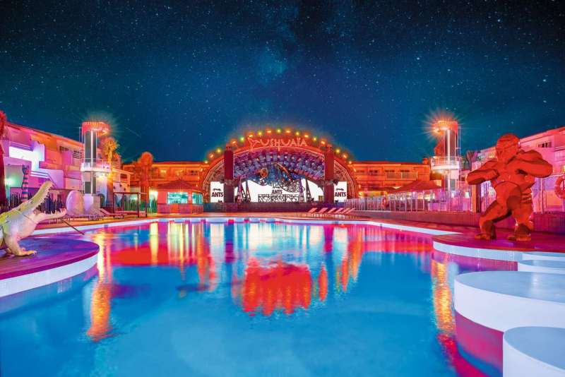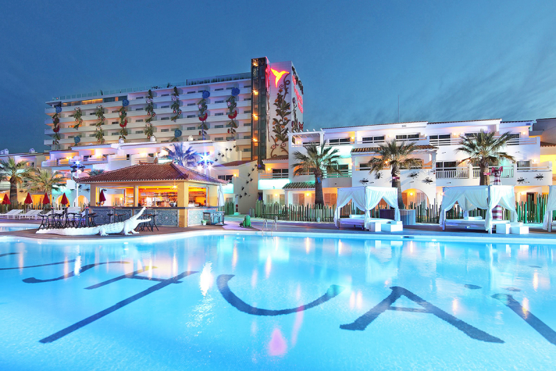 Perfekter könnte die Lage von diesem 5-Sterne Hotel eigentlich nicht sein. Der Flughafen liegt 5 Fahrminuten entfernt und den herrlichen Strand erreichen Sie ebenfalls nach wenigen Gehminuten. Die Luxusunterkunft bietet vor allem dem Partypublikum alles was benötigt wird. Die moderne Einrichtung, die einzigartige Gartenlandschaft und natürlich die Bühne, welche das Herzstück der Anlage bietet, runden das Angebot ab. Internationale Künstler sorgen in diesem Hotel immer wieder für eine ausgelassene Stimmung.