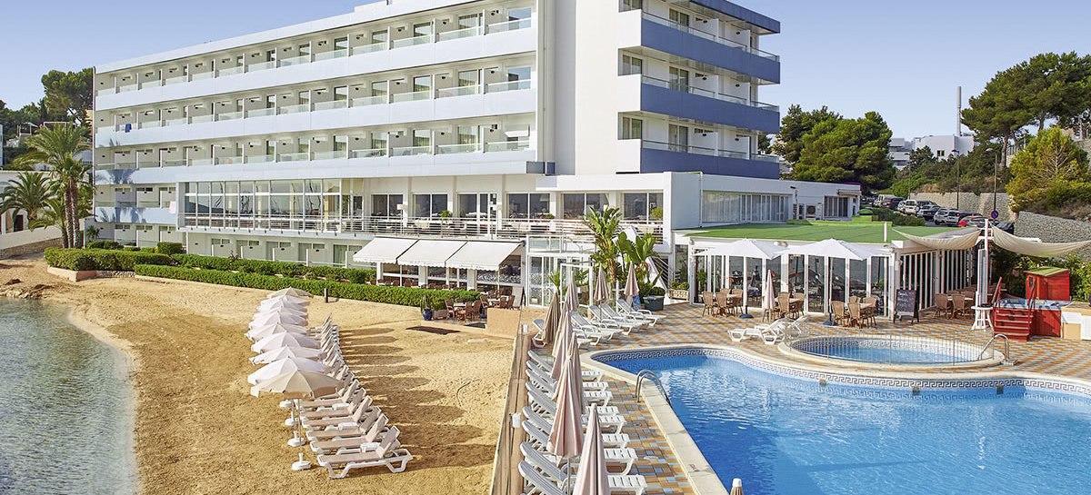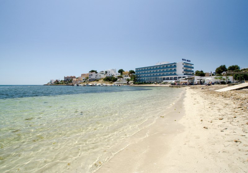 Im Hotel Argos wohnt Ihr direkt an der Sandbucht von Talamanca – mit ruhigem Blick aufs Wasser und kurzen Wegen in die Stadt. Das Haus mit fünf Etagen und 106 Zimmern wirkt aufgeräumt, funktional und klar strukturiert. WLAN ist im gesamten Hotel gratis, Ihr bleibt also überall vernetzt.
