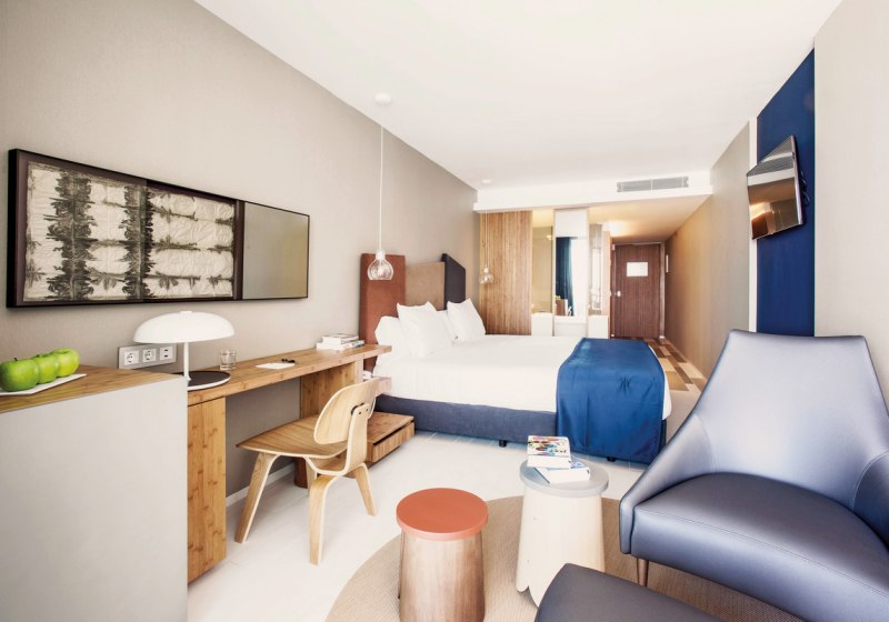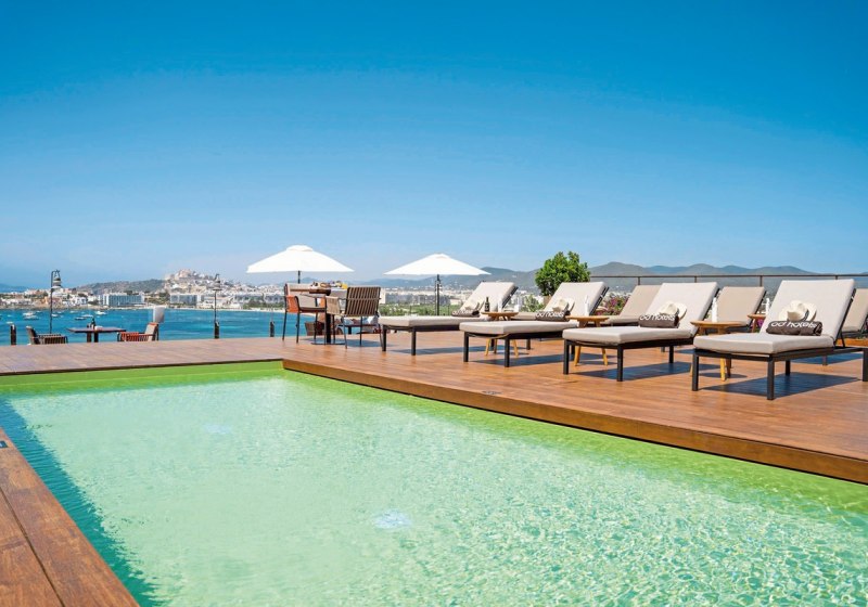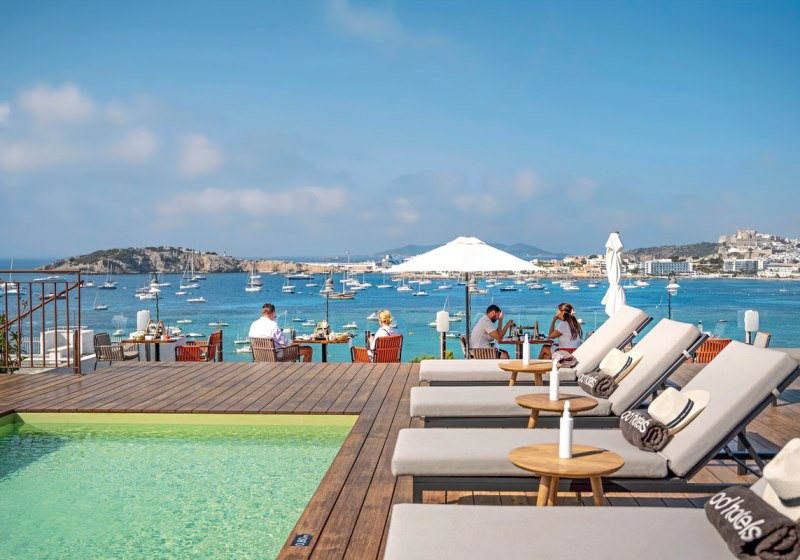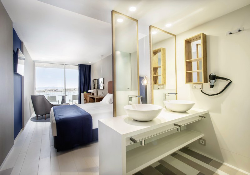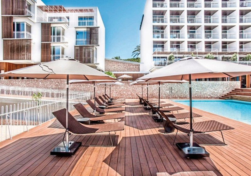 Mit 117 Zimmern behält das Hotel eine angenehme Übersichtlichkeit, die Sonnenterrassen mit Liegen und Sonnenschirmen öffnen den Blick auf die Pools und schaffen Raum zum Ankommen. Familien profitieren von Juniorsuiten mit Schiebetür zum Wohnbereich, Strandurlauber von der Lage nahe Ibiza-Stadt, Business-Gäste von Konferenz- und Bankettmöglichkeiten. Concierge-, Mietwagen- und Fahrradservices unterstützen Euch flexibel bei Euren Plänen. Highlight: Vielseitiges Haus mit Familienvorteilen, Business-Optionen und Strandnähe.