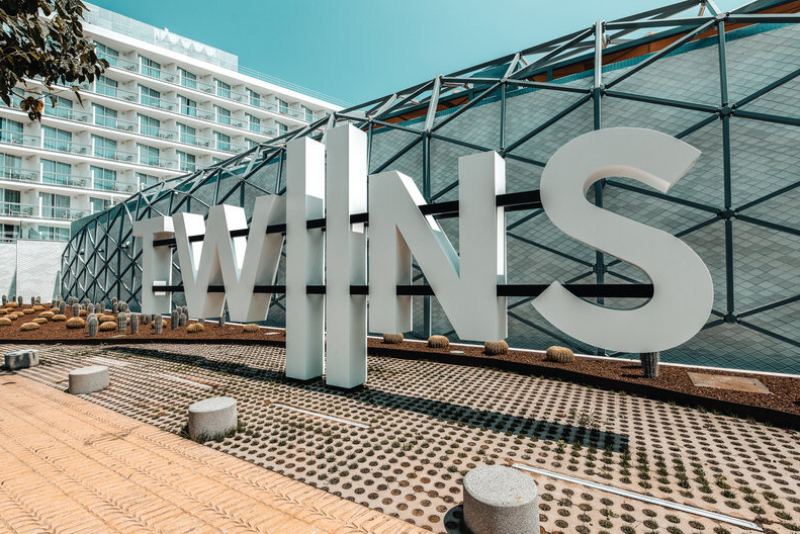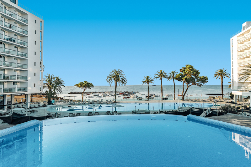 Das The Ibiza Twiins ist ein modernes 4,5-Sterne-Hotel, das direkt an der Strandpromenade von Ibiza, Spanien, liegt. Dieses hoch bewertete Resort-Hotel ist von zwei Hauptgebäuden gekennzeichnet, die insgesamt 495 Zimmer auf 7 Etagen umfassen. Das Hotel bietet seinen Gästen ein einladendes Spa-Center, eine weitläufige Außenanlage, zwei Süßwasser-Swimmingpools und kostenloses WLAN. In unmittelbarer Nähe des Hotels finden Sie zahlreiche Einkaufs- und Unterhaltungsmöglichkeiten, während der Flughafen nur 6 km entfernt liegt.