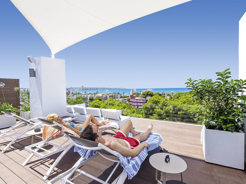 - Dachterrasse: Sonnenplätze mit Weitblick über die Playa de Palma.
