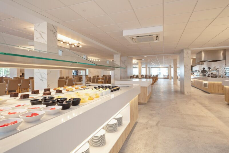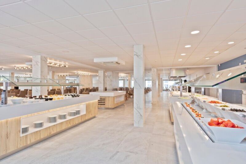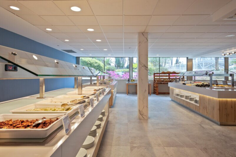 Das Hotel verfügt über ein Restaurant und zwei Bars, darunter eine Snackbar und eine Hotelbar, die eine breite Palette an Mahlzeiten und Getränken anbieten. Gäste können zwischen Übernachtung mit Frühstück, Halbpension und All-Inclusive wählen. Besonders hervorzuheben ist das vielfältige Buffet, das sowohl Frühstück, Mittag- und Abendessen, als auch Snacks und ausgewählte Getränke beinhaltet.