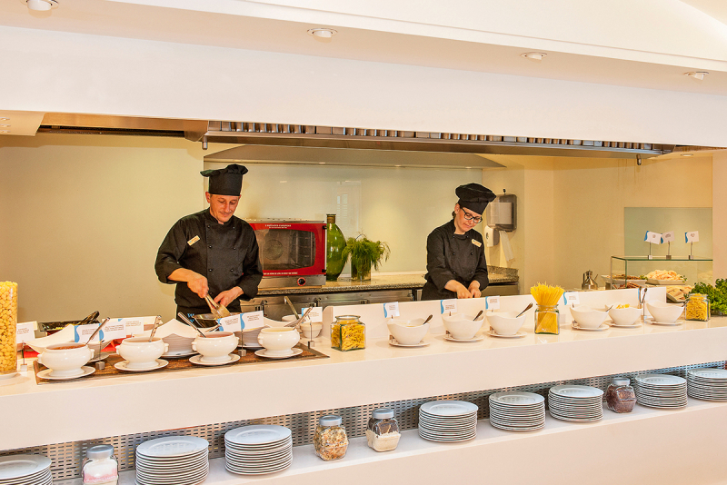 Das Hotel besitzt ein Buffetrestaurant mit internationaler Küche. Es bietet Verpflegungsmöglichkeiten von Übernachtung mit Frühstück bis hin zu Halbpension, inkludiert Frühstück (Buffet) und Abendessen (Buffet). Es gibt zusätzlich spezielle Diätgerichte und Live-Kochen.Ausstattung