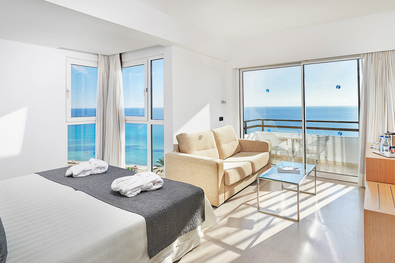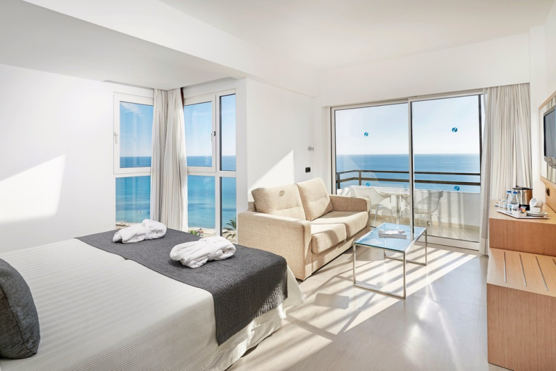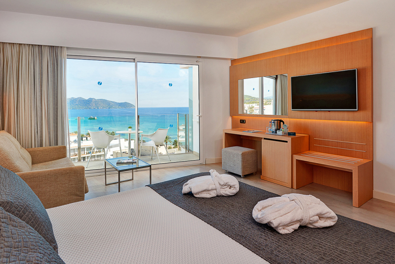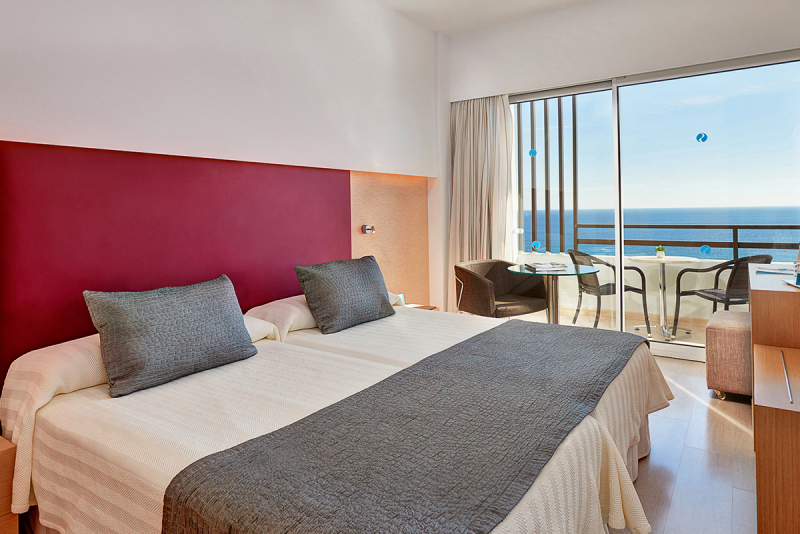 Die Zimmer im Hotel sind geräumig und gut ausgestattet. Es gibt Doppelzimmer und Juniorsuiten, einige mit seitlichem Meerblick. Alle Zimmer verfügen über modernes Komfort wie WLAN, Safe und Minibar. Die Badezimmer sind mit Dusche/WC und Haartrockner ausgestattet.