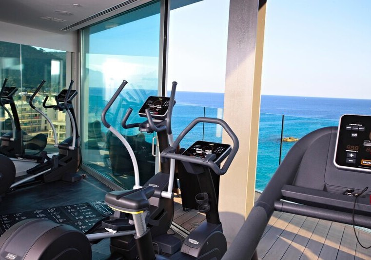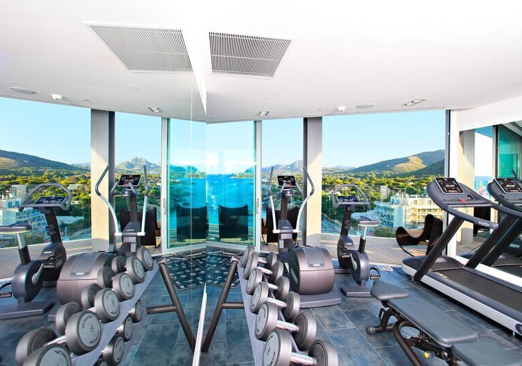 • Training mit Blick: Fitnessraum orientiert sich zur Bucht Son Moll.