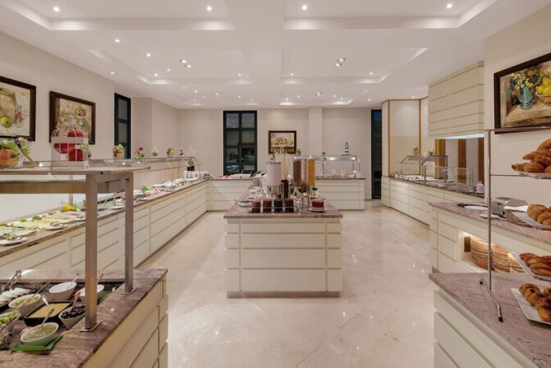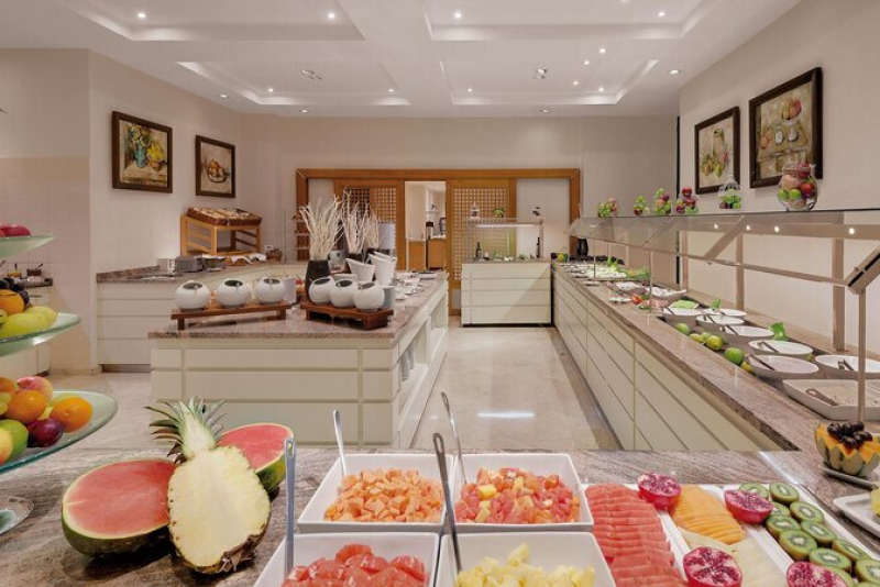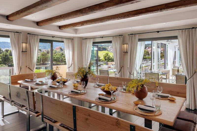 Das Steigenberger Hotel & Resort Camp de Mar verfügt über ein hauseigenes Restaurant 'El Mallorquín', welches spanische Küche serviert, und zwei Bars - eine Poolbar und eine Hotelbar. Die Verpflegungsmöglichkeiten reichen von Übernachtung mit Frühstück bis hin zur Halbpension, wobei auch Live-Kochen angeboten wird.Ausstattung