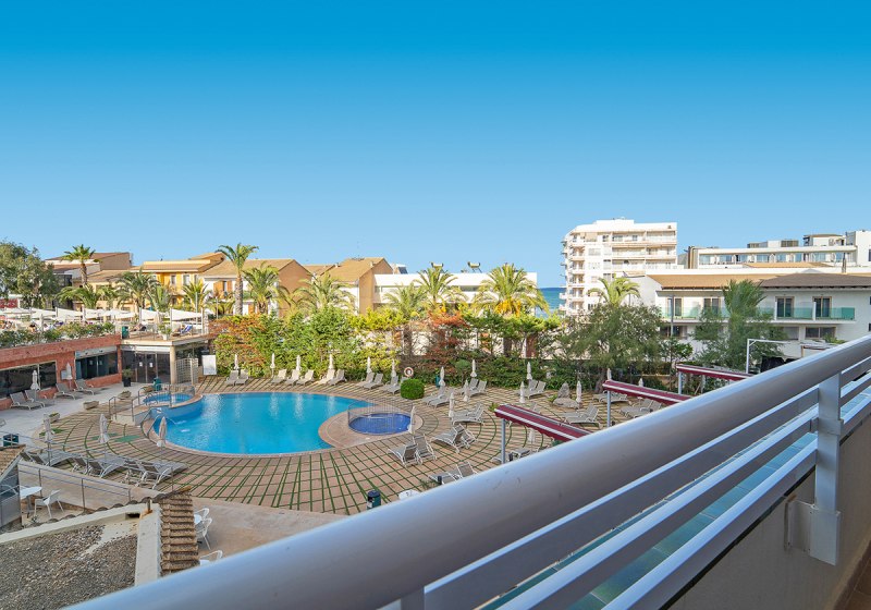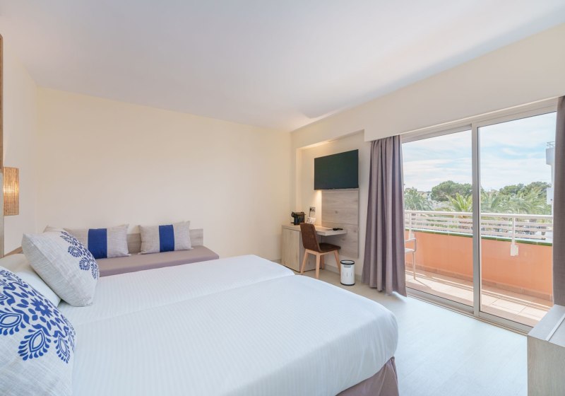 Im Caprice Janeiro Hotel & Spa erwartet Euch ein lebendiger, gut organisierter Rückzugsort nahe der Badebucht Son Bauló. Ihr wohnt in zwei Hauptgebäuden mit 233 Zimmern; gegenüber liegt ein separates Appartementhaus mit 22 Einheiten. Die Atmosphäre ist unkompliziert und aktiv: Sonnenplätze auf der Terrasse, zwei Außenpools und ein Kinderbecken strukturieren den Tag, während kostenloses WLAN Euch überall verbunden hält. Familien fühlen sich wegen Miniclub und Spielzonen wohl, Aktivreisende schätzen Fitnessraum und die hauseigene Radsportstation.