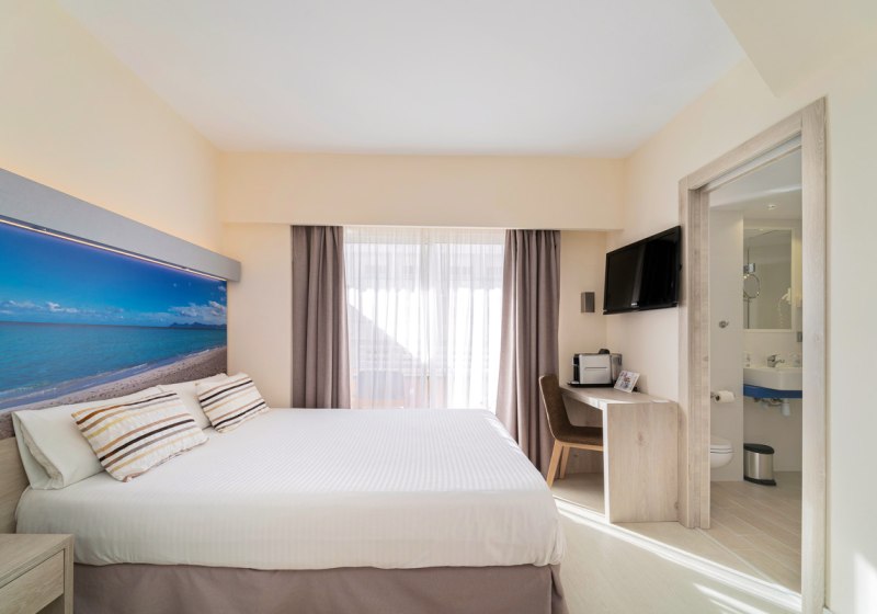 Die Doppelzimmer messen etwa 21 Quadratmeter und bieten Dusche/WC, Föhn, Klimaanlage, Telefon, Sat-TV, Mietsafe, Minikühlschrank sowie einen Balkon. Einzelzimmer sind mit rund 20 Quadratmetern ähnlich ausgestattet, verzichten jedoch auf den Balkon – eine klare, kompakte Lösung für Alleinreisende.