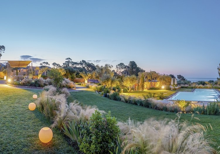 Naturnaher Küstenort mit weiter Bucht, Pinienhängen und eleganter Zurückhaltung.