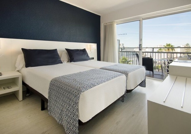 Im Catalonia Del Mar wohnt Ihr in einem Erwachsenenhotel mit Mindestalter 16 – ruhig, fokussiert und klar strukturiert. Das Haus liegt strandnah, mit kurzen Wegen und praktischer Anbindung. Gemeinschaftsbereiche wirken aufgeräumt: große Sonnenterrassen, Liegestühle und Schirme am Außenpool, dazu eine Poolbar für entspannte Pausen. WLAN und eine 24-Stunden-Rezeption halten Euch flexibel – Tag und Nacht.