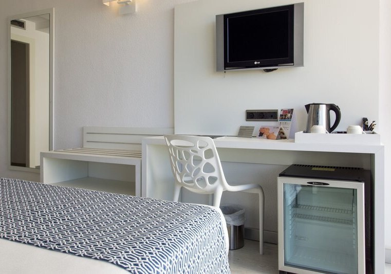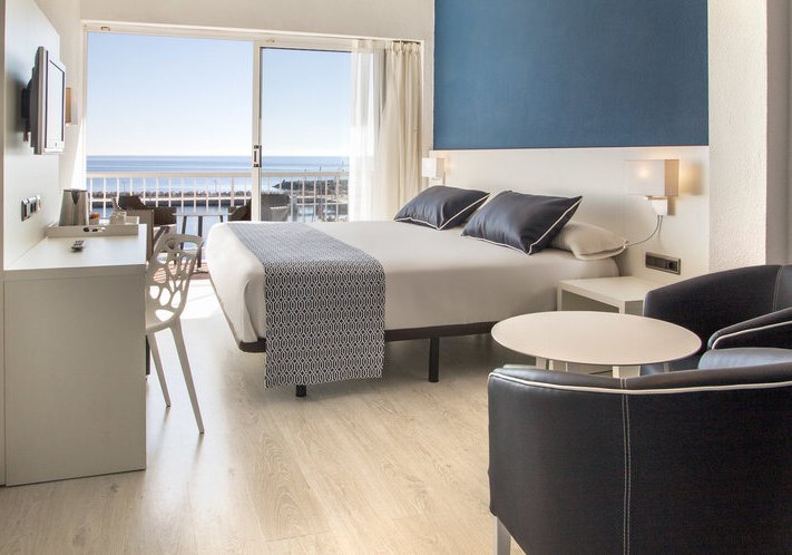 Ihr wohnt in Zimmern mit klaren Komfort-Details: Klimaanlage und Heizung, Schallisolation, Holz- oder Parkettboden und ein Schreibtisch für strukturierte Stunden. Viele Einheiten verfügen über Balkon oder Terrasse; Ausblicke reichen je nach Kategorie von Meer über Pool bis Berge. Safes, Minibar oder Minikühlschrank sowie Kaffee- und Teezubereiter runden den Alltag ab.