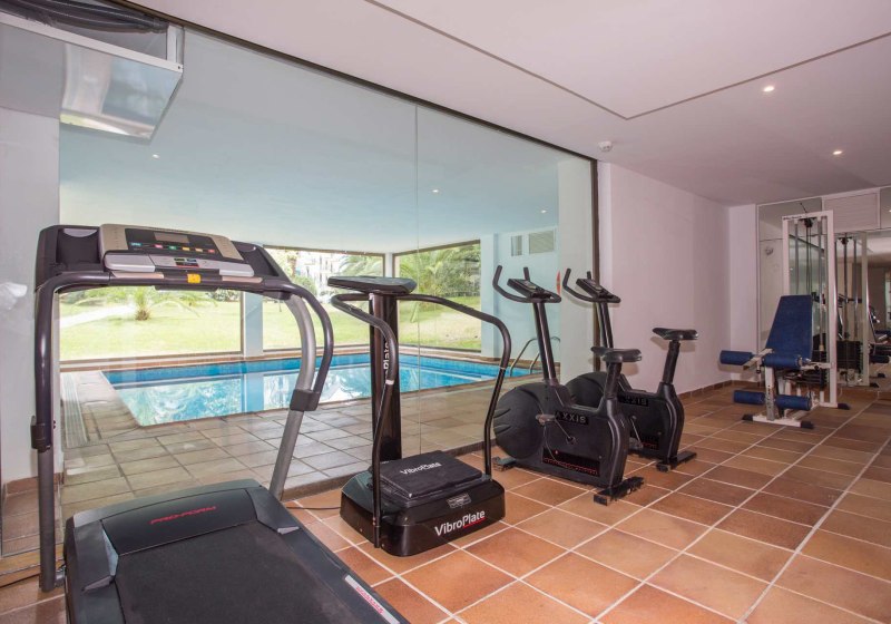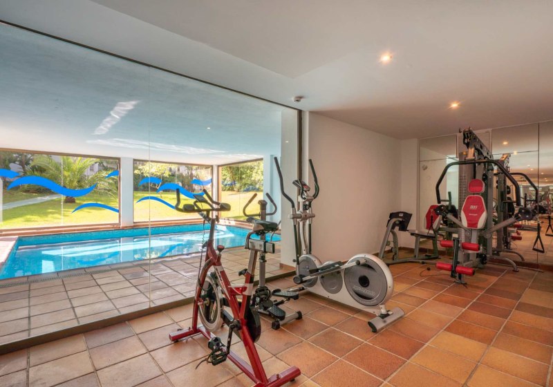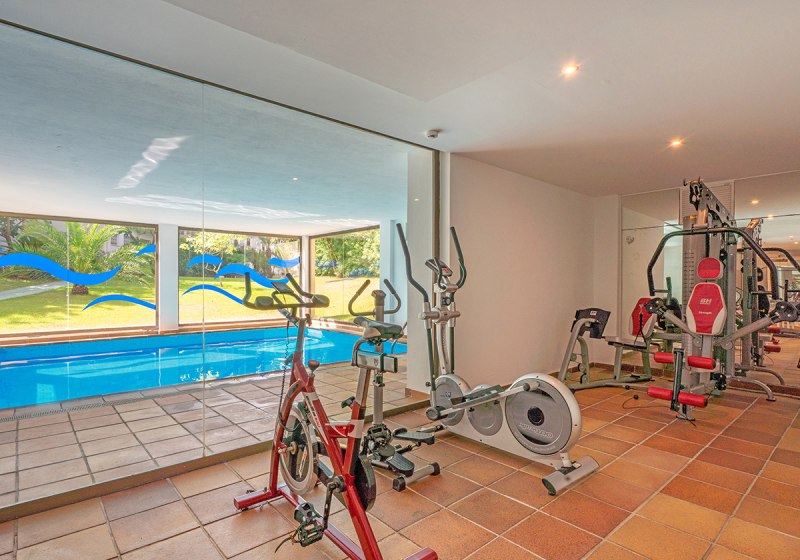 Für ruhige Bahnen bei jedem Wetter nutzt Ihr das Hallenbad, das ausschließlich Erwachsenen vorbehalten ist. Dieser Bereich ergänzt die Außenpools sinnvoll, wenn Ihr den Tag abseits der Sonne strukturieren möchtet. Die Fitnessecke bietet einen kompakten Rahmen für kurze Einheiten zwischendurch.