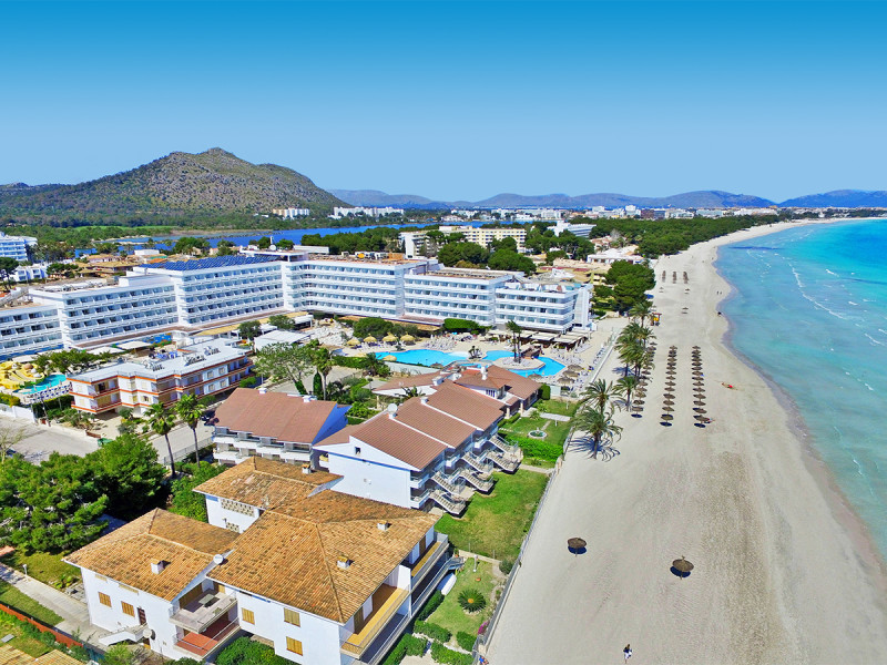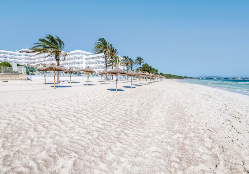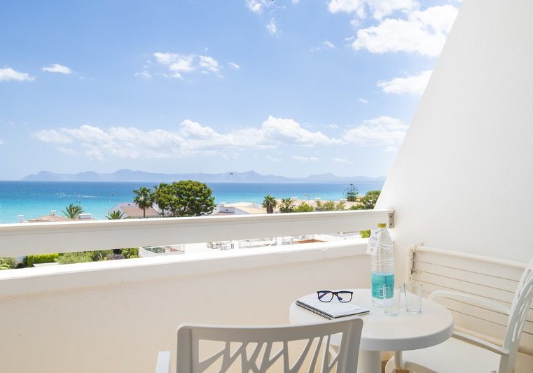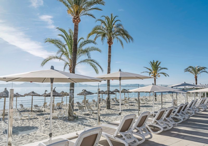 Die Lage ist ein handfester Vorteil: direkt am Sandstrand der Bucht von Alcudia, mit nur etwa 4 Kilometern Distanz bis Puerto de Alcudia. Eine Bushaltestelle liegt rund 100 Meter entfernt, der Golfplatz etwa 8 Kilometer, die Altstadt circa 5 Kilometer. So verbindet Ihr Strandnähe mit unkomplizierten Ausflügen und kurzen Wegen.