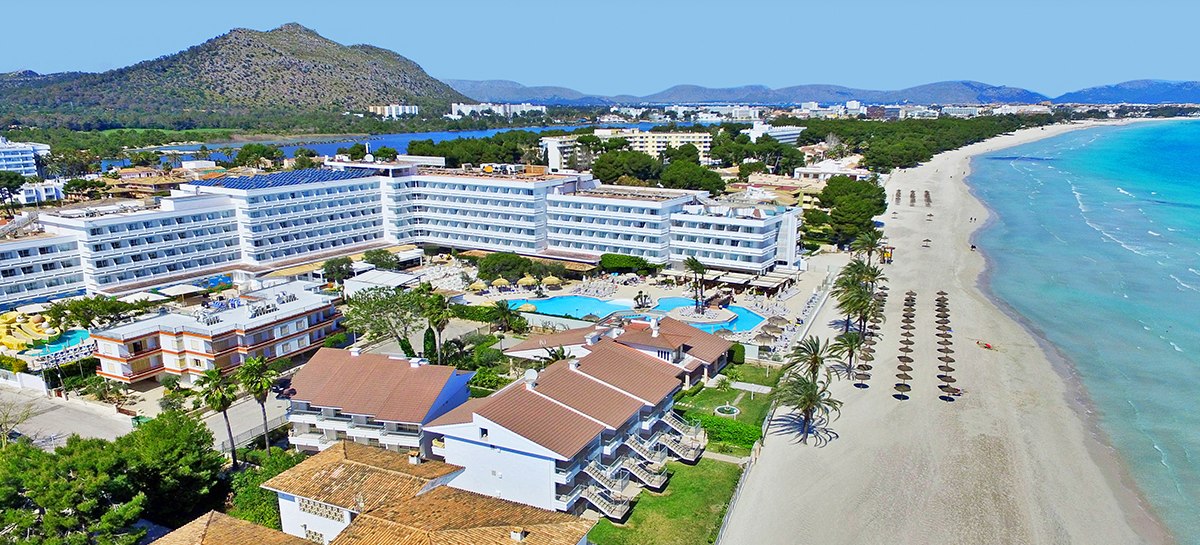 Im Hotel Condesa wohnt Ihr direkt am Sandstrand der Bucht von Alcudia, mit freiem Blick auf weites Wasser und kurzen Wegen in den Tag. Die großzügigen Gemeinschaftsbereiche wirken klar strukturiert, mit Gartenbereichen samt Hängematten, zwei Außenpools und einer Dachterrasse exklusiv für Erwachsene. Familien finden Miniclub, Splash-Pool und Spielplatz, Aktivere erreichen Sport, Shows und Live-Musik ohne Umwege.