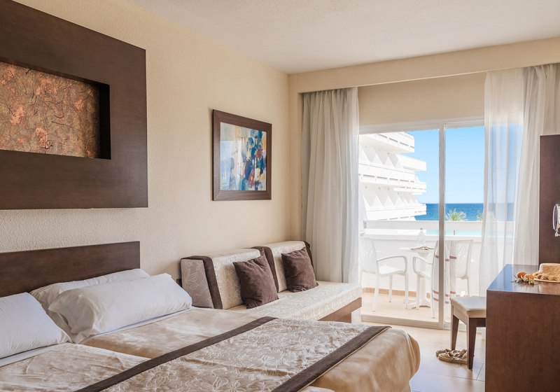 Ihr wählt zwischen Doppelzimmern ab ca. 22 m² mit Bad oder Dusche/WC, Föhn, Schlafsofa, zentraler Klimaanlage/Heizung, TV und Balkon; Safe und Minibar sind gebührenpflichtig. Varianten mit seitlichem oder direktem Meerblick sind verfügbar. Internetzugang per WLAN ist vorgesehen, die Gestaltung bleibt funktional und klar.