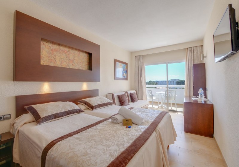 • Kernkomfort: Doppelzimmer mit Balkon, Klima, Schlafsofa und TV ausgestattet.