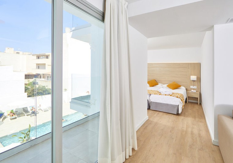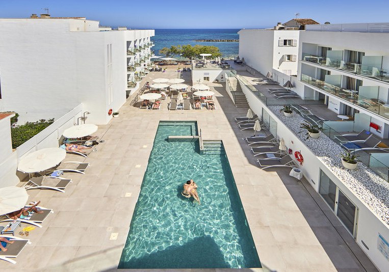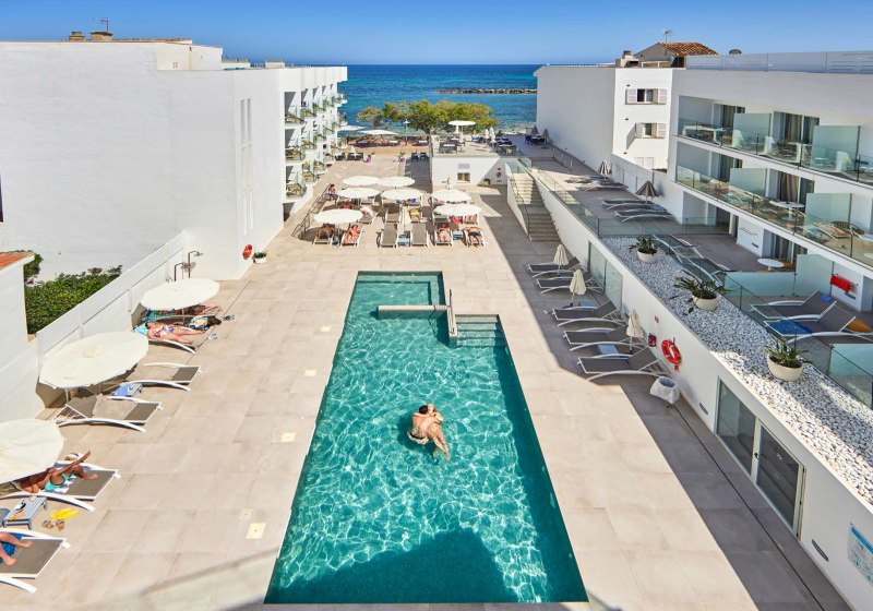Direkt zwischen dem Fischerhafen und der Bucht von Cala Bona empfängt Euch das Hotel Ilusion Moreyo als Adults-Only-Retreat ab 16 Jahren. Die Lage am Sandstrand prägt den Rhythmus Eurer Tage: morgens das Licht über dem Meer, abends die Klänge von Live-Musik. Kompakt, übersichtlich, mit klaren Wegen – so bewegt Ihr Euch mühelos zwischen Strand, Terrasse und Pool.