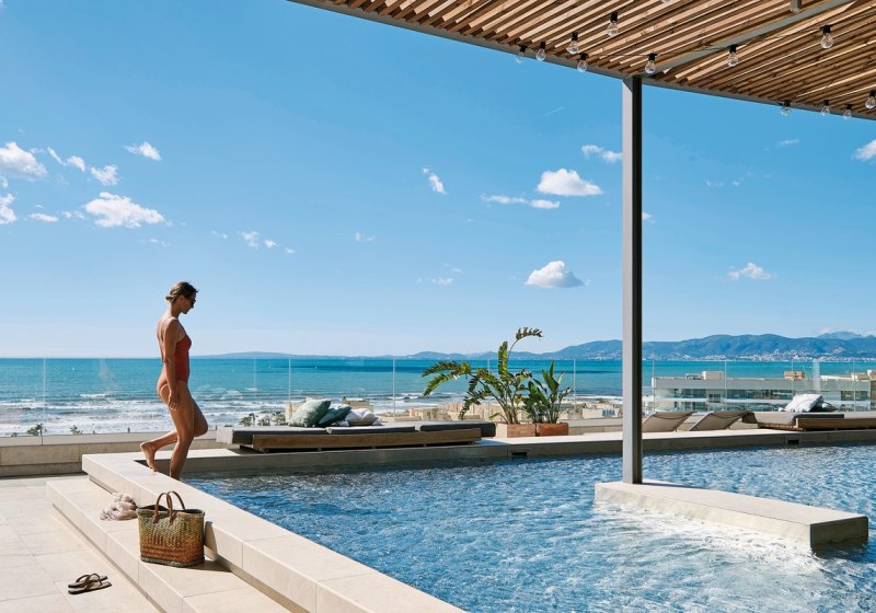 Im Iberostar Selection Llaut Palma wohnt Ihr direkt an der Playa de Palma, in einem Erwachsenenhotel ab 16 Jahren mit klarer Linie und entspannter Leichtigkeit. Die öffentlichen Bereiche wirken modern und kompakt, mit sonniger Terrasse, Balibetten und Außenpool samt Whirlpool. Highlight: Adults-only-Haus wenige Meter vom Strand mit ruhiger Atmosphäre.