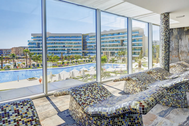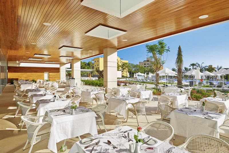 Das Hotel bietet Übernachtung mit Frühstück oder Halbpension mit Buffetstil. Es gibt ein Buffetrestaurant und drei Bars, darunter eine Poolbar, eine Lobbybar und eine Rooftop-Bar. Für diejenigen mit speziellen diätetischen Bedürfnissen sind glutenfreie Mahlzeiten und vegetarische Kost verfügbar.Ausstattung