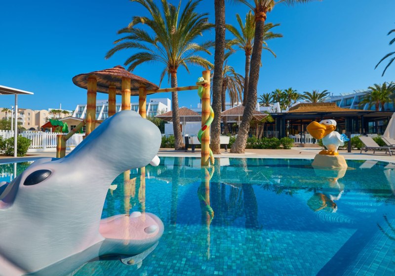 Im Protur Sa Coma Playa Hotel & Spa wohnt Ihr gegenüber dem Naturgebiet Punta de n’Amer, nur wenige Schritte vom feinen Sand entfernt. 2023 renoviert, wirkt das Haus zugleich frisch und vertraut. Zwei Außenpools setzen den Ton: ein ruhiger Erwachsenenpool für ungestörte Bahnen und ein Familienpool mit leichtem Trubel. Für Kinder wartet der Paradise Park mit Spielbereichen und zwei separaten Kinderbecken – Ihr behaltet alles im Blick und plant den Tag entspannt zwischen Wasser, Garten und kurzer Strecke zum Strand.
