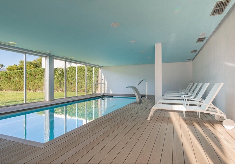 - Innenbereich Spa: Hallenbad, Sauna und Whirlpool bieten wetterunabhängige Entspannung vor Ort.