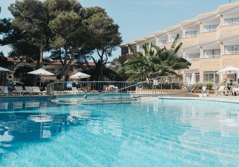 Das Hotel verfügt über 133 Wohneinheiten, verteilt auf ein Haupthaus und mehrere niedrige Gebäude. Ein Piniengarten rahmt den zentralen Pool mit Sonnenterrasse, Liegen und Schirmen inklusive. In der Empfangshalle mit Rezeption, Sitzbereichen und TV-Lounge findet Ihr einen ruhigen Treffpunkt. Kostenloses WLAN verbindet Euch in den öffentlichen Bereichen wie auch im Zimmer.