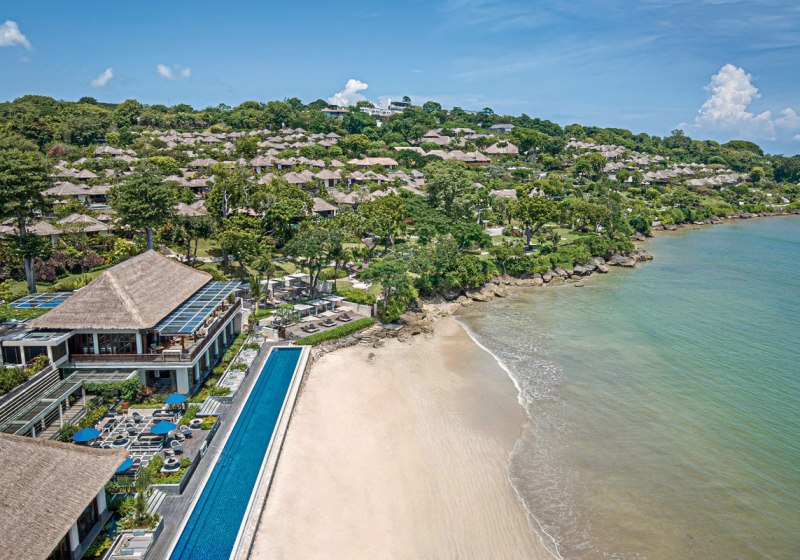 Familien finden mit Kinderclub und Kinderbetreuung ein entspanntes Umfeld, Paare schätzen Rückzug und großzügige Privatsphäre in Villen mit Privatpool. Der Beach Club Sundara bringt Atmosphäre bis in den Abend, während das Healing Village Spa mit klar umrissenen Anwendungen aufwartet. Highlight: Villenresort mit Privatpools direkt an der Jimbaran Bay, ruhig gelegen und strandnah verbunden.