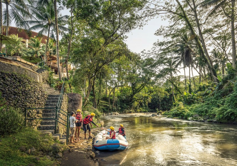 Mit indonesischer Küche in der Ayung Terrace, Pools über zwei Ebenen, Spa mit Sauna und Dampfbad sowie dem Pici Pici Club für Kinder passt das Resort zu Kulturinteresse, Erholung und Aktivität in ausgewogenem Verhältnis. Ein Shuttle bringt Euch in rund 15 Minuten nach Ubud.