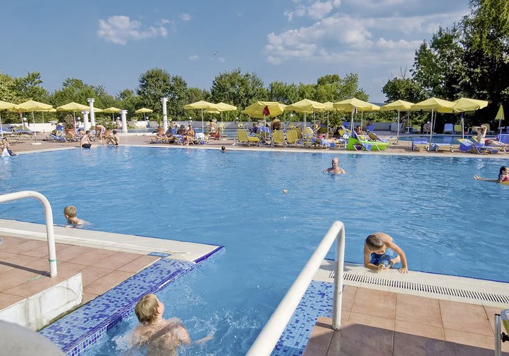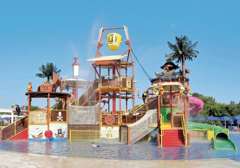 Sport zieht sich durch den Tag: Zehn Tennisplätze, Minigolf und eine Bogenschießanlage bilden die Basis an Land. Dazu kommen Tischtennis, Billard, Darts, Boccia, Aerobic, Gymnastik und Yoga. Rund um Wasser stehen vier Außenpools und ein Aquapark mit sechs Rutschen bereit, unterstützt von strukturierten Aqua-Fitness- und Wasseraerobic-Einheiten.