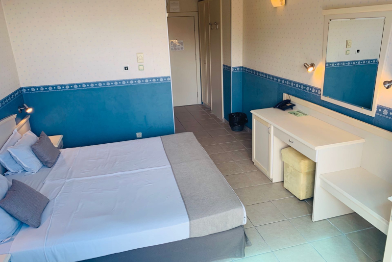 Das Aphrodite ist ein moderner, stilvoller Bau mit zweckmäßig eingerichteten Zimmern. Alle 180 klimatisierten Zimmer haben einen kleinen Balkon oder im Erdgeschoss eine Terrasse und sind mit Telefon, Sat-TV, Minibar und gebührenpflichtigem WLAN ausgestattet. Es gibt vier verschiedene Zimmerkategorien, die entweder einen Ausblick auf die Innenstadt oder auf die Poollandschaft bieten. Das große Familienzimmer kann von vier Personen bewohnt werden.