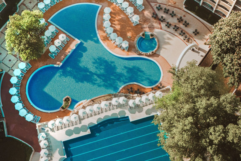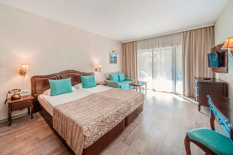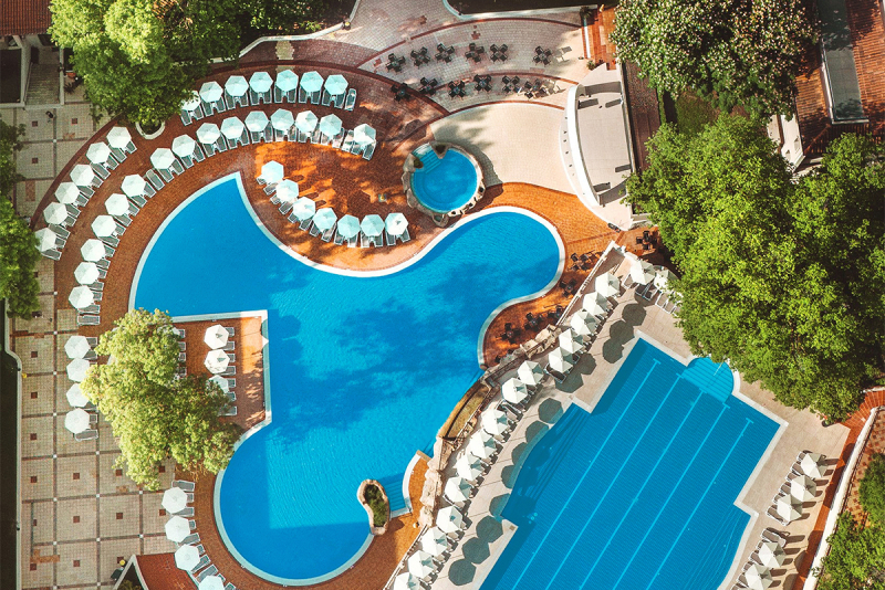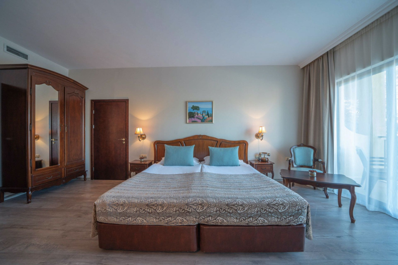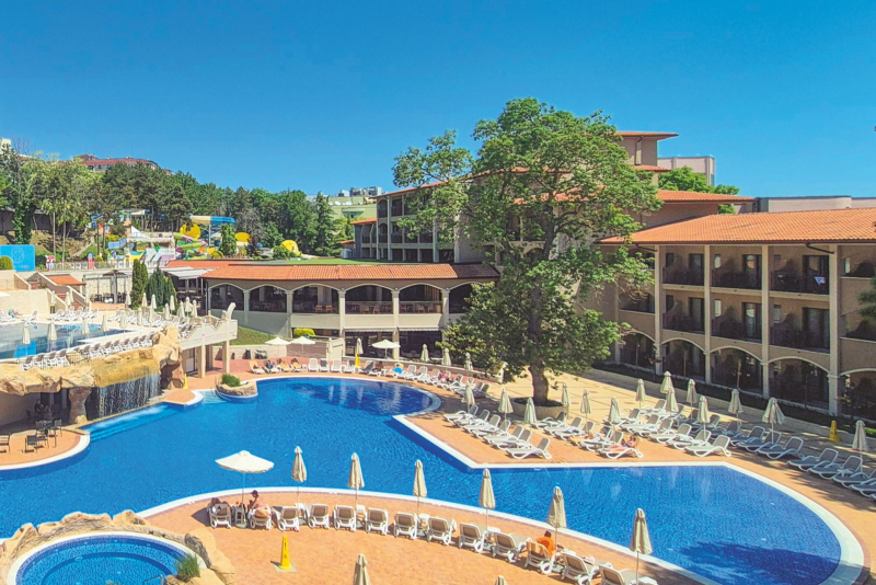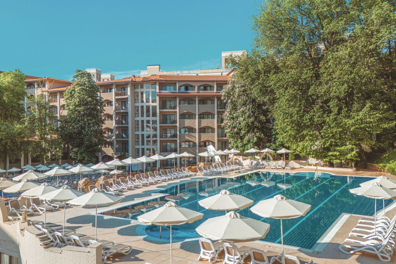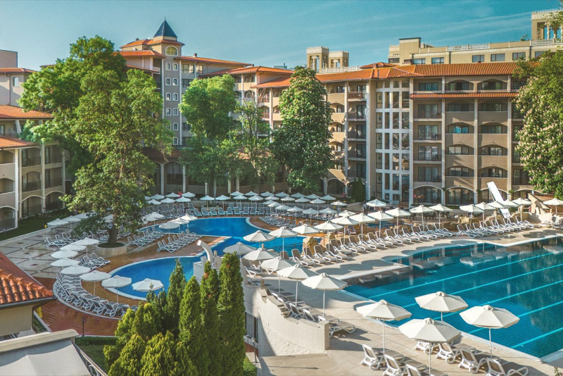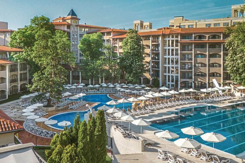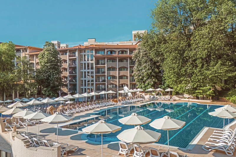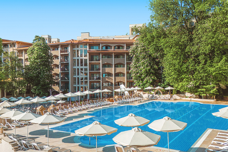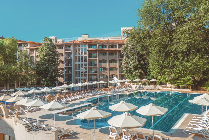 Das Grifid Club Hotel Bolero besticht durch seine hervorragende Lage direkt am Strand, der nur 50 Meter entfernt ist. Ebenfalls in unmittelbarer Nähe befinden sich der Flughafen Varna, etwa 30 Kilometer entfernt, und das Stadtzentrum, nur 500 Meter entfernt. Für Ausflüge in die Umgebung ist eine Bushaltestelle nur 400 Meter vom Hotel entfernt.