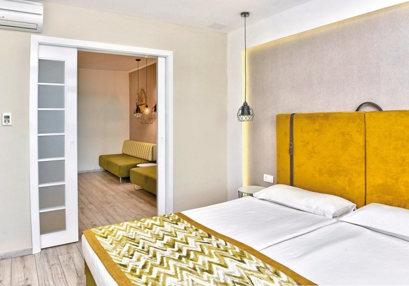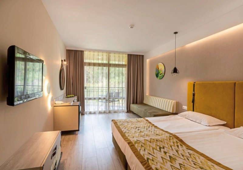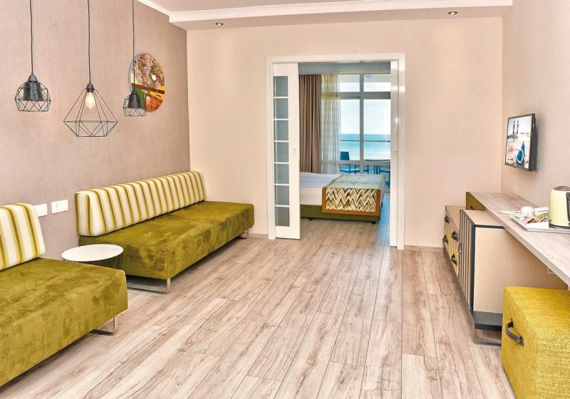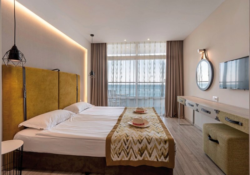• Klimaanlage • Balkon (je nach Zimmerkategorie) • Haartrockner • Minibar (kostenfrei) • Safe (kostenfrei) • Meerblick (je nach Zimmerkategorie) • Schlafsofa • Kaffee-/Teezubereiter • Terrasse • Fernseher • WiFi (kostenfrei) • Gartenblick • Schallisolation