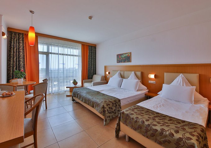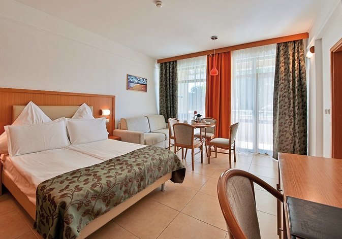 Ihr logiert im Herzen von Albena, etwa 150 Meter vom Meer entfernt. Einkaufsmöglichkeiten liegen rund 250 Meter entfernt, der Busbahnhof und der ÖPNV sind in etwa 750 Metern erreichbar. Die Transferzeit vom Flughafen Varna beträgt ungefähr 55 Minuten. Für Golfer lohnt sich der Blick auf den Platz in rund 20 Kilometern Entfernung. Highlight: Kurzer Weg zum Strand, dennoch vollständig zentrale Lage.